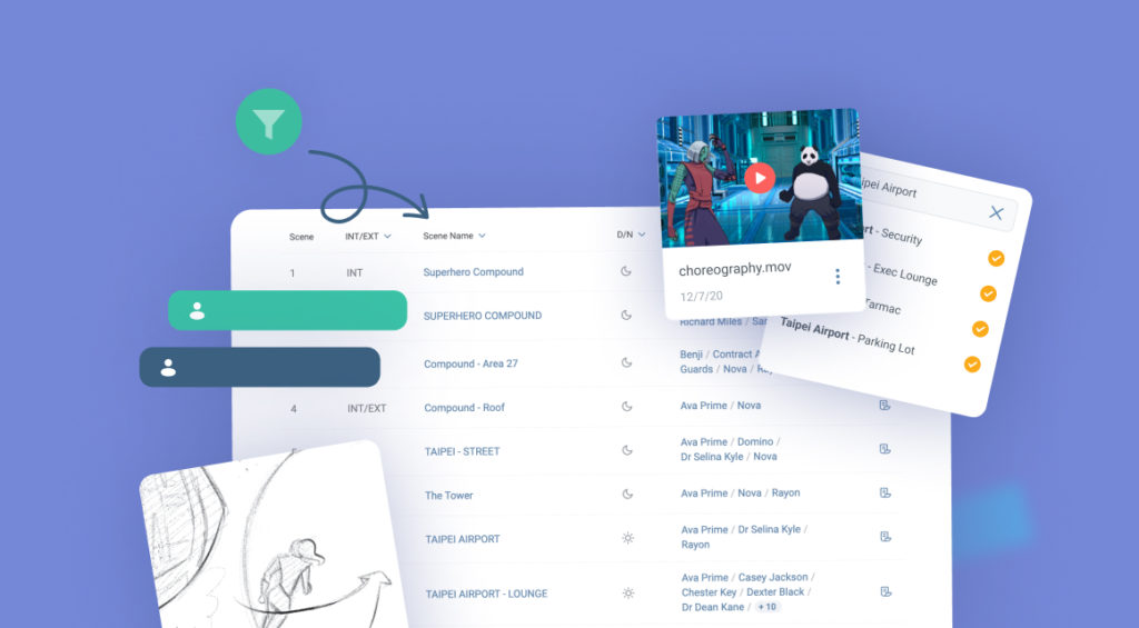A script breakdown that doubles as a creative reference hub—connecting storyboards, pre-vis videos, and designs.